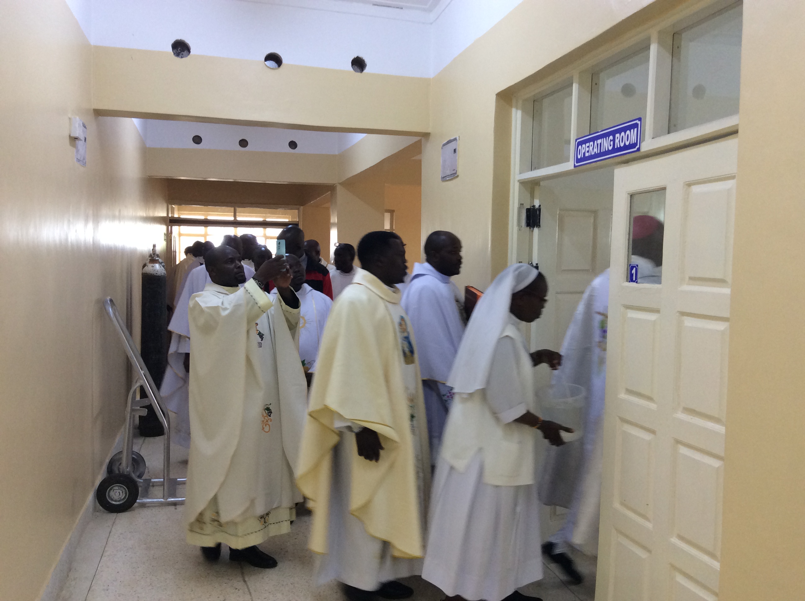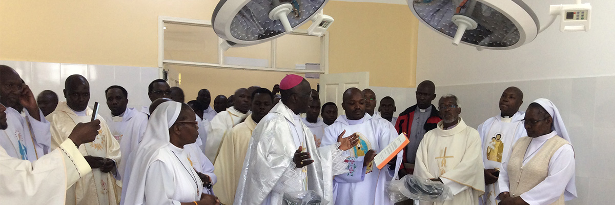 Rt. Rev. Bishop Dominic Kimengich, Bishop Catholic Diocese of Eldoret and the entire catholic Diocese of Eldoret Priests blessing the theatre and the equipment's.